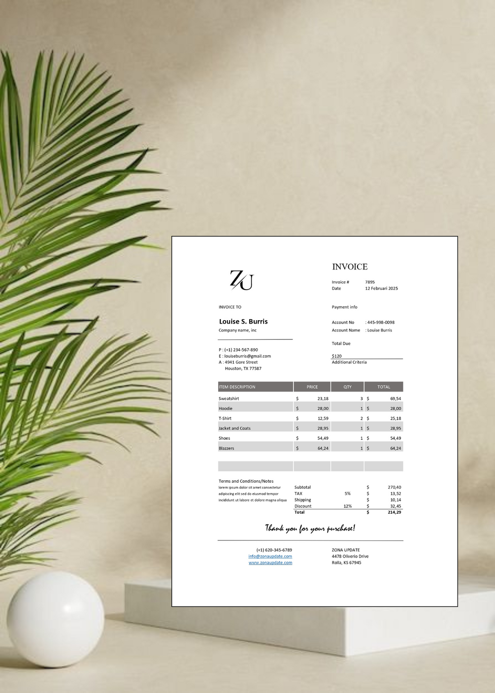 You can save this template in PDF form, mail it or get a printout. Very easy to use, just replace the logo with your own logo and business name, and save your time without having to create an invoice template again and again.